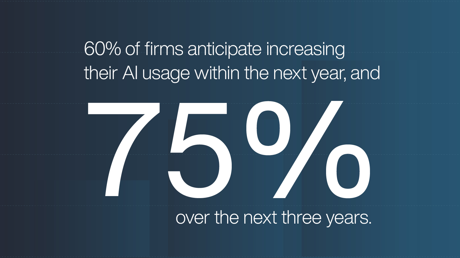 60% of firms anticipate increasing their AI usage within the next year, and 75% over the next three years.